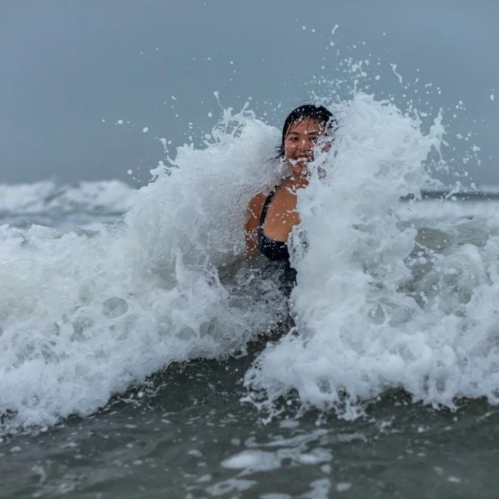 Through her photography, Aamie captures this connection — whether it’s the wild joy of people playing in the waves, the quiet tenderness of a maternity session, or a striking ocean print that brings serenity into a space.
